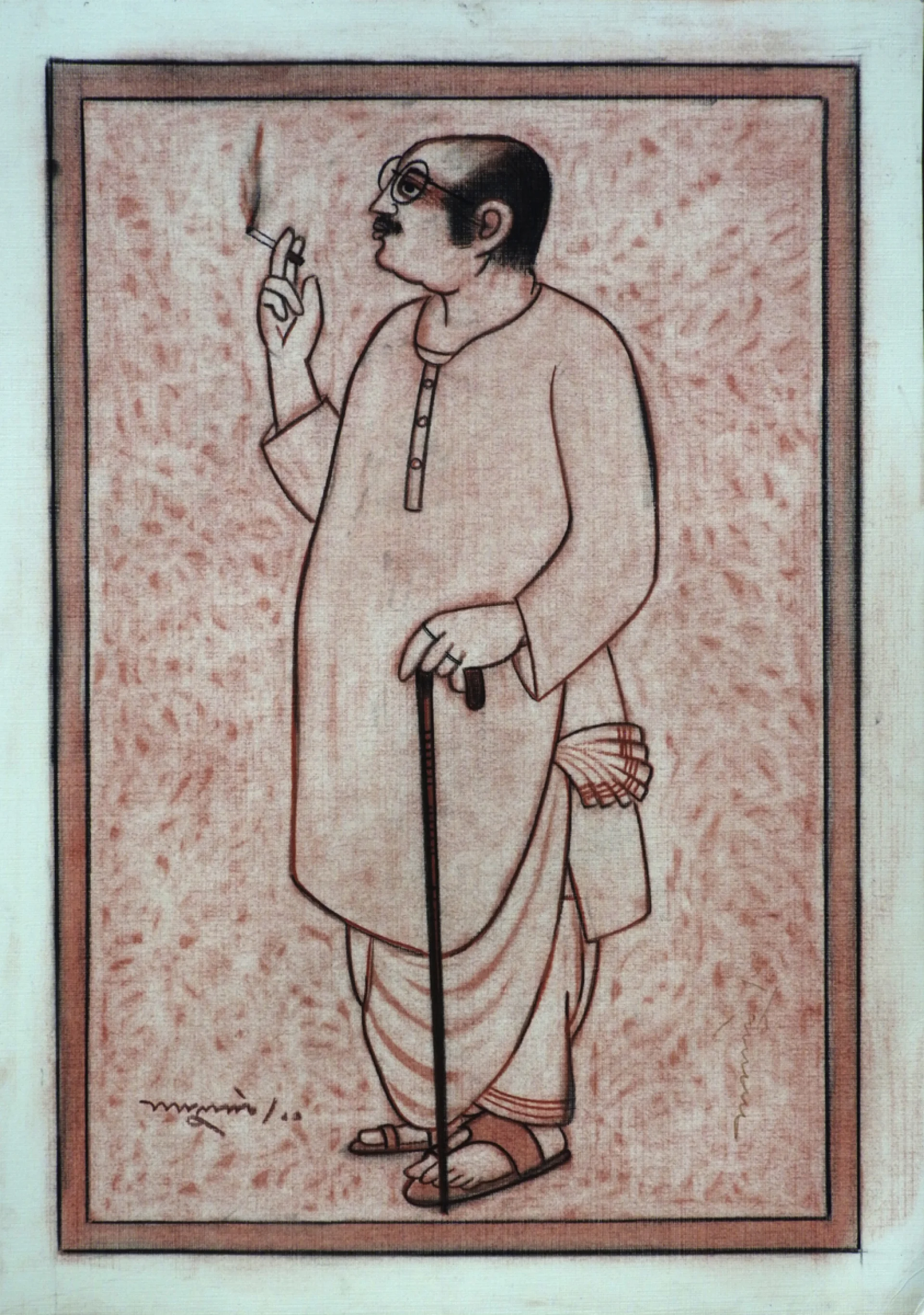 Lalu Prasad Shaw was born in Siuri; district Birbhum in the year 1937. As he was growing up, a sudden incident changed the way he looked at life. From his house the workplace of the Malakars could be seen. They sculpted idols and drew several kinds of patas that were to be placed behind the idols of the gods. Gradually, an ambition to become an artist grew within him. Each day while returning from school, he picked up local colours in his hands and prepared to draw pictures according to the desires of his mind. When Shaw was in class VIII, Pinakinath Bhattacharya was appointed in his school as the art teacher. He often formed a troop with these students and went outdoors to draw the landscapes of the red soil. Though Shaw was passionate about art, he never thought of converting it into a profession. During the years of his adolescence, what most flaunted the Bengal art scene was the presence of Abanindranath and Gaganendranath's works. The monthly Basumati, Prabasi and Modern Review projected their works at regular intervals. Shaw updated himself with such works through these magazines, and he started copying those works. In 1967, he joined the 'Society of Contemporary Artists'. Artist Sanat Kar introduced him to graphic prints for the first time. Suhas Roy returned from Paris and taught Shaw the techniques of etching. Thus, he submerged himself, from 1966-1973, in the practice of printmaking. After joining the society he started concentrating on etching from 1967. He felt that his interest towards two-dimensionality increased manifold times. In parallel he also devoted his skills in developing the drama of chiaroscuro. His abstractions however were never diluted abstractions. His works were based on formative abstraction. Shaw cannot be understood without understanding his works in print. He worked constantly both in etching and lithography. He remained in the Society of Contemporary Artists to work in etching. Later in Santiniketan, he worked on lithographic prints. In 1973, under the able guidance of Somenath Hore, Shaw re-designed the department of printing at Kala Bhavana.