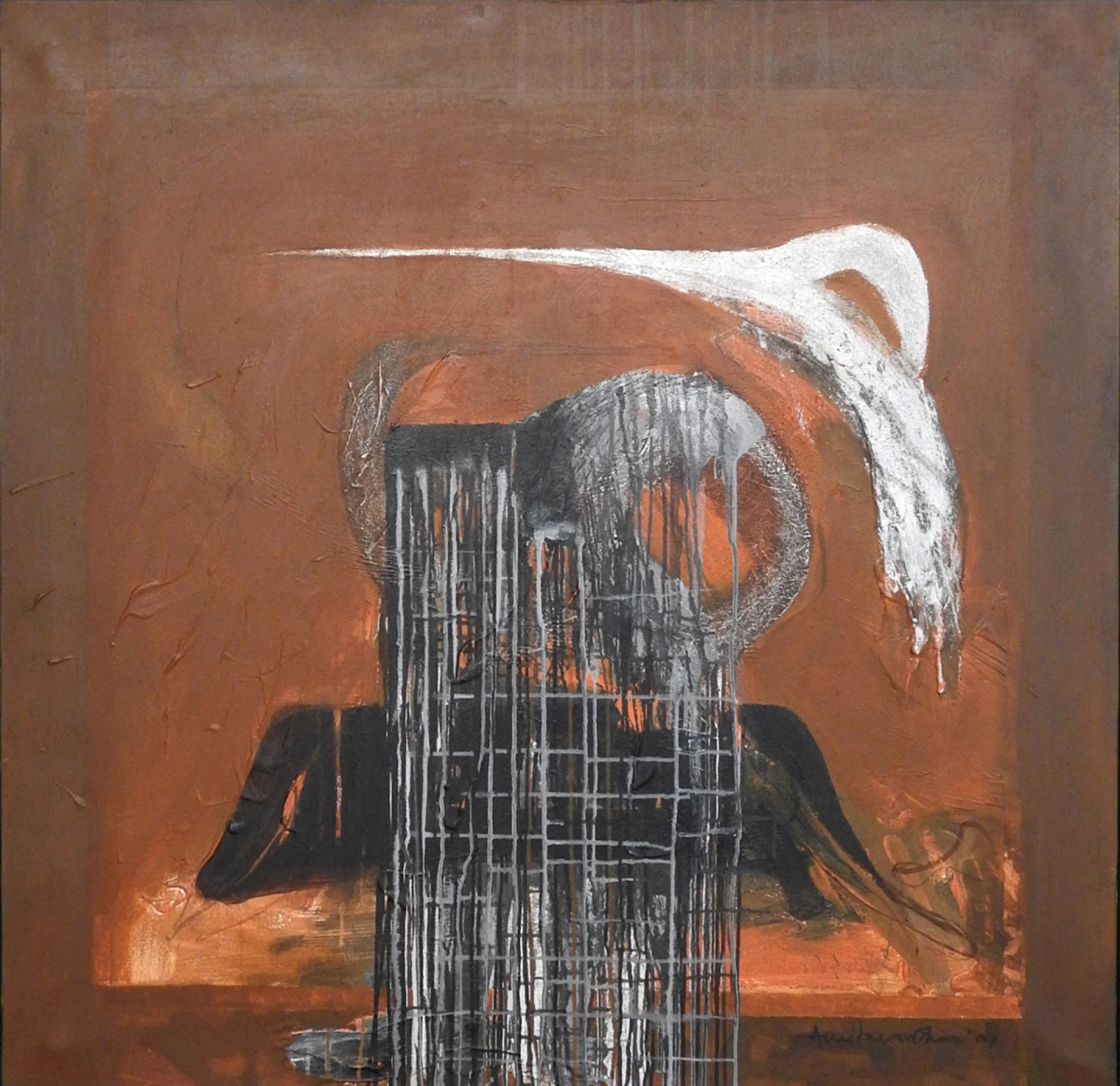 Dhar's artistic philosophy revolves around addressing the "unseen," as he seeks to reveal deeper truths through abstraction. His works, rich in both form and content, continuously push the boundaries of what abstraction can represent in terms of human experience and emotional resonance.