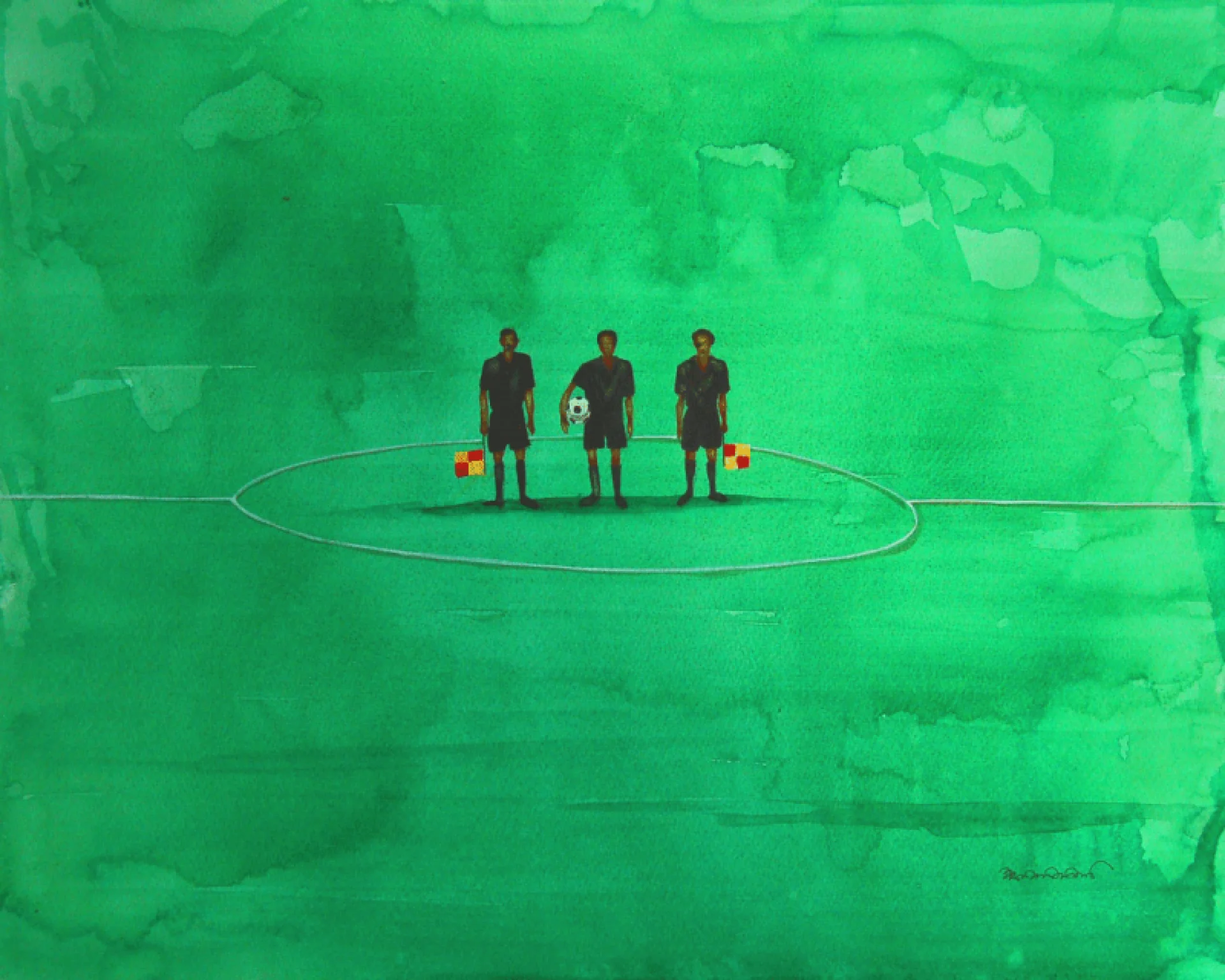He is influenced by the pop artists of Britain and their American counterparts. His works represents the conflict between the nature and the urbanization. He uses the figures and the colour metaphorically which represent the psychological aspect of human life and self. His childhood memories of lush green, stream and hills remind him the encroachment of nature by the development and urbanization. The hush realities of metro cities inspire him to paint. The disillusion of urban life of metropolises is represented by the serene colours, pity and fancy figures.