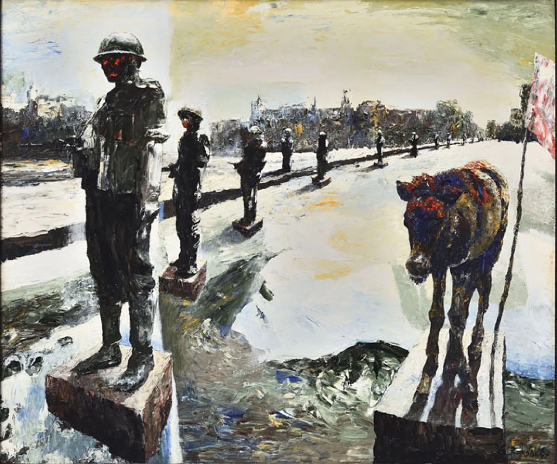 Bikash Bhattacharjee (21 June 1940 – 18 December 2006) was born in Kolkata, West Bengal. The early demise of his father instilled in him a profound sense of insecurity and empathy for the underprivileged, themes that would later permeate his art. He graduated with a Diploma in Fine Arts from the Indian College of Art and Draftsmanship in 1963. Bhattacharjee’s upbringing in a culturally rich and politically active city greatly influenced his artistic journey.