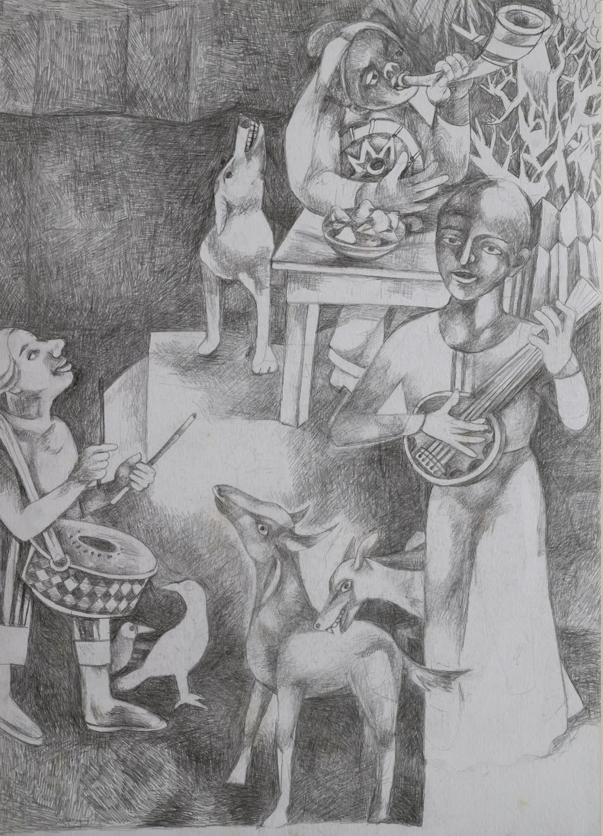 Gurcharan Singh is a distinguished Indian artist known for his deeply humanistic and visually rich portrayals of everyday life in India. A graduate of the Government College of Arts and Craft, Chandigarh (1973), Singh has spent over five decades developing a distinctive figurative style rooted in memory, observation, and a profound empathy for the marginalised. His paintings are populated by street performers, vendors, women, children, animals, and mythic figures, brought together in layered compositions that reflect the simultaneity of the sacred and the secular in Indian life.