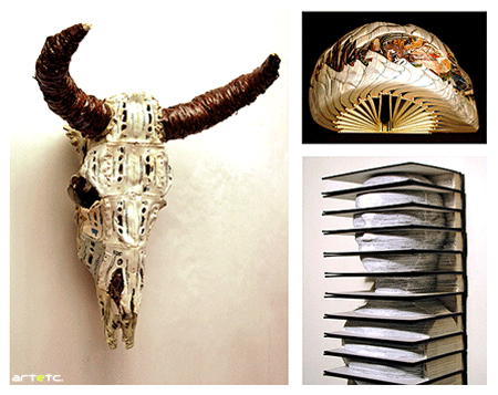 Dettmer has enhanced his artistic experiments by folding, bending, rolling or stacking one or more books before sealing and cutting them or, in some instances, sanding them to create a variety of forms. New Books of Knowledge is a recent example of a sculpture created by Dettmer using a full set of encyclopaedias.