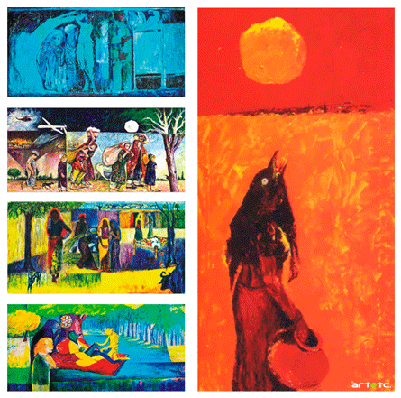 “He has emerged from yellow and the ochre, only to plunge into blue and red”.-S Nayab Hussain
